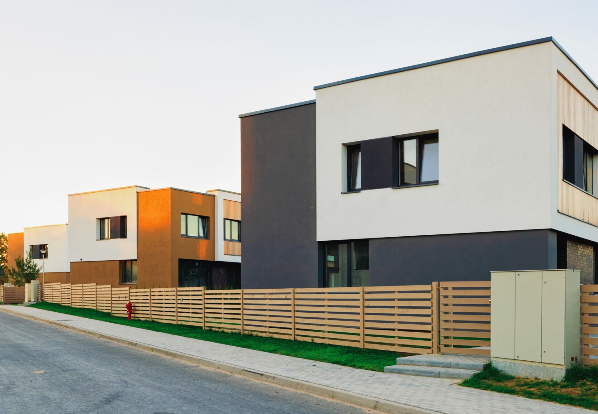 La façade s’articule autour d’un jeu de cadres saillants et de panneaux ajourés en aluminium découpé, offrant à la fois intimité, ventilation et élégance.